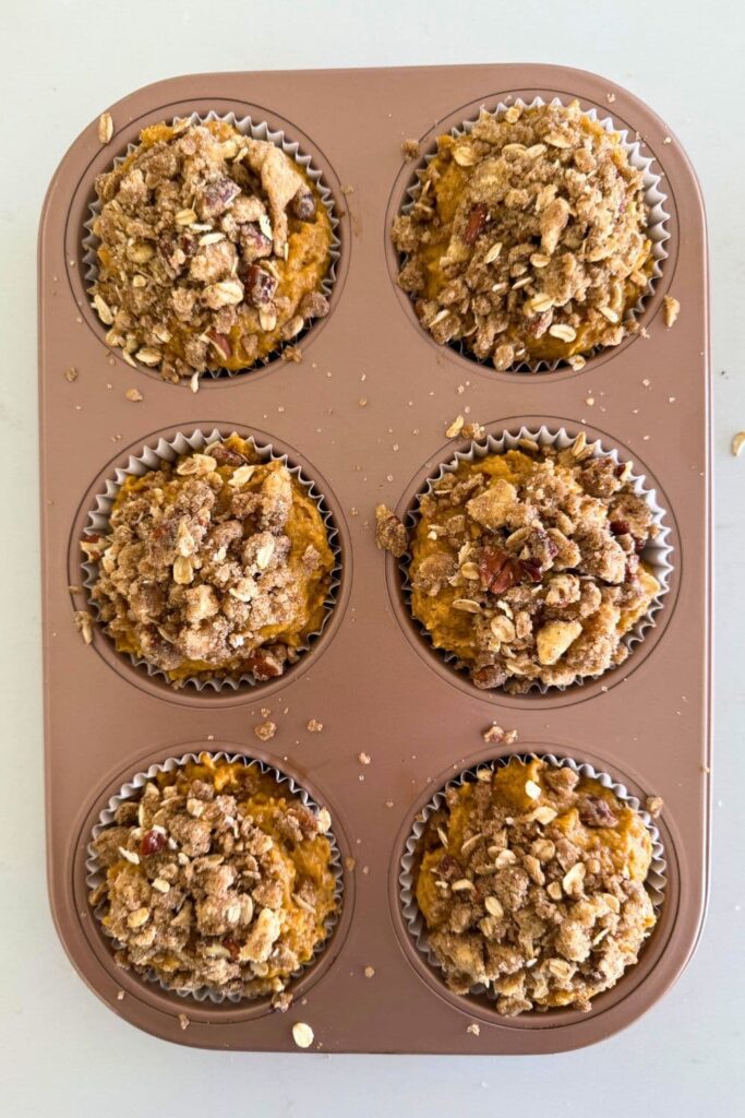 I've also added a crunchy streusel topping which really takes these sourdough pumpkin muffins to the next level! It takes seconds to make and sprinkle over. But if you'd prefer your pumpkin muffins plain, you can certainly leave this step out.