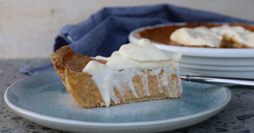 Sourdough Pumpkin Pie is a delicious twist on this Thanksgiving classic. A flaky and buttery sourdough pie crust filled with velvety smooth pumpkin filling that's thickened with sourdough starter!