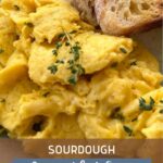 Serve sourdough scrambled eggs alongside some sourdough toast or sourdough discard pancakes.