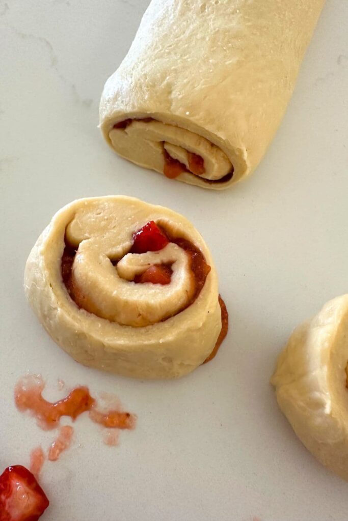 One of the best things about these sourdough strawberry rolls, is that you can use any summer fruit you like. You could swap strawberries for raspberries, blueberries, apricots etc, just like in this sourdough berry cobbler!