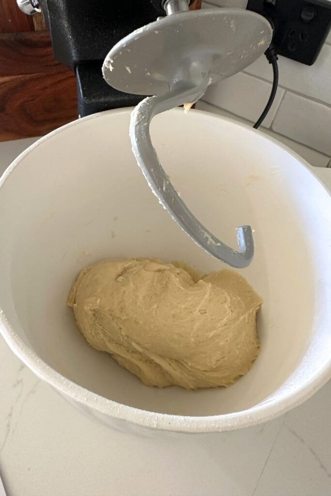 - Add the butter and knead into the dough until the dough is smooth and fairly elastic. You may need to increase the speed of your stand mixer to allow the butter to be incorporated (see notes below).