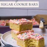 You can also bake this recipe in a pan measuring 8" x 12" if you would prefer the cookie bars to be slightly thinner. The bake time should be the same, just keep an eye on the edges! The amount of frosting listed in the recipe is perfect for this size pan too.