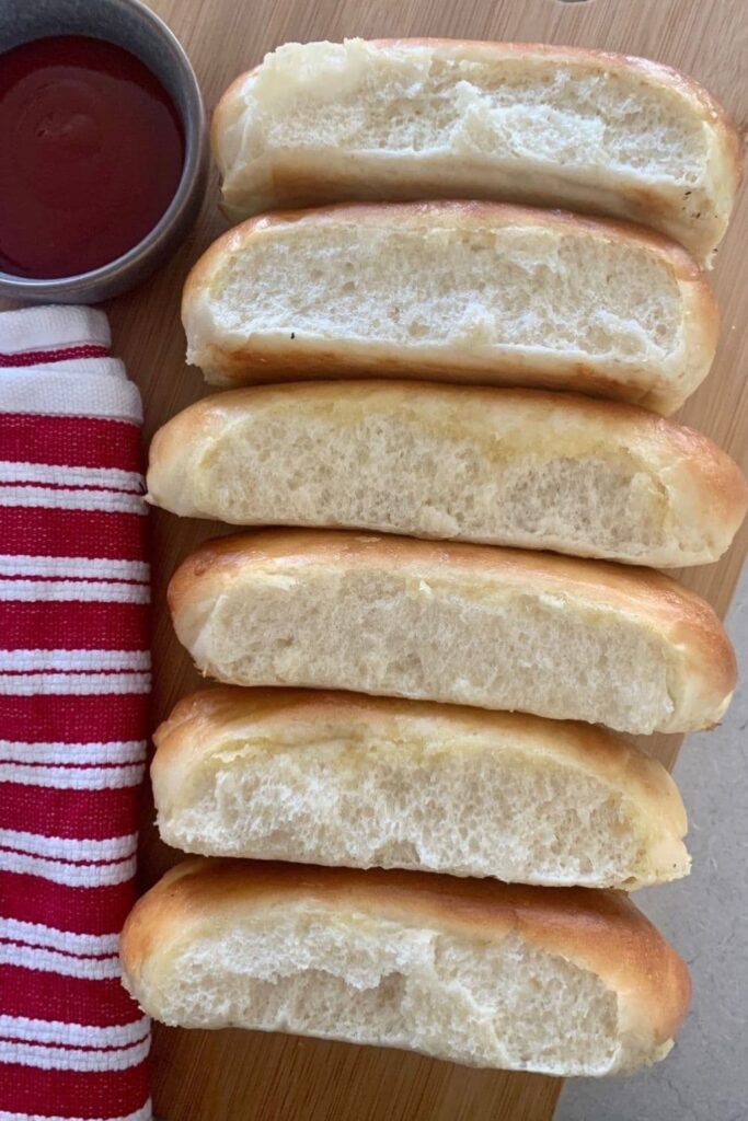 If you prefer a more standard size hot dog, why not make some sourdough hot dog rolls! You can use them not only for hot dogs, but also pulled pork, roast beef or even ham and cheese. Such a great way to celebrate the Super Bowl with some sourdough love too!