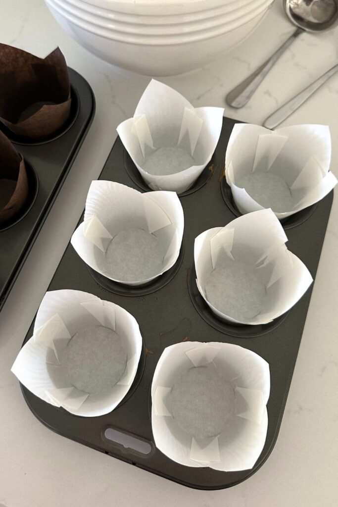 - Spray your cupcake liners with cooking spray to stop the cake batter from sticking to them during baking. This will ensure the sourdough vanilla cupcakes come away from them easily once baked.