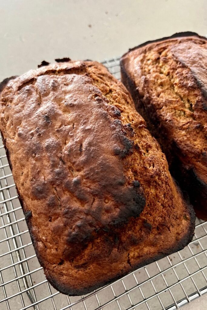 - Allow the sourdough zucchini bread to cool in the tins for 10 to 15 minutes before removing them and placing on a wire rack to cool.