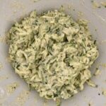 - Grate the zucchini and squeeze out as much liquid as possible.