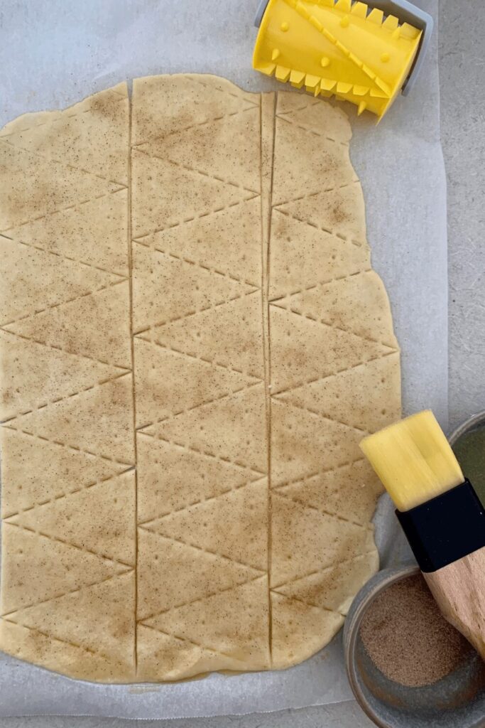 - Brush dough with olive oil and sprinkle liberally with cinnamon and vanilla sugar - you can use as much or as little as you want.