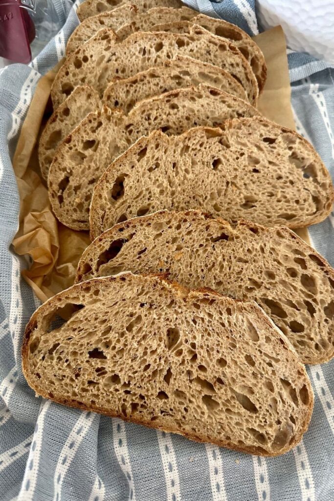 I've been baking sourdough bread for a few years now, but yesterday was the first day that I achieved an open crumb with large alveoli (thanks to you, I learned that new term)! Also, thanks to you I now know that the slightly shiny, gelatinous look of the alveoli is normal and good! In addition, your post on slicing sourdough bread is so informative! Thanks for explaining everything in such detail. So helpful! Next, on my list is to make your sourdough multigrain loaf. Happy Baker!