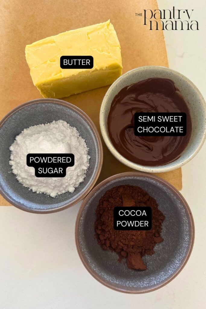 - Powdered Sugar - powdered sugar easily dissolves into the butter and melted chocolate adding sweetness and structure to this whipped chocolate butter.