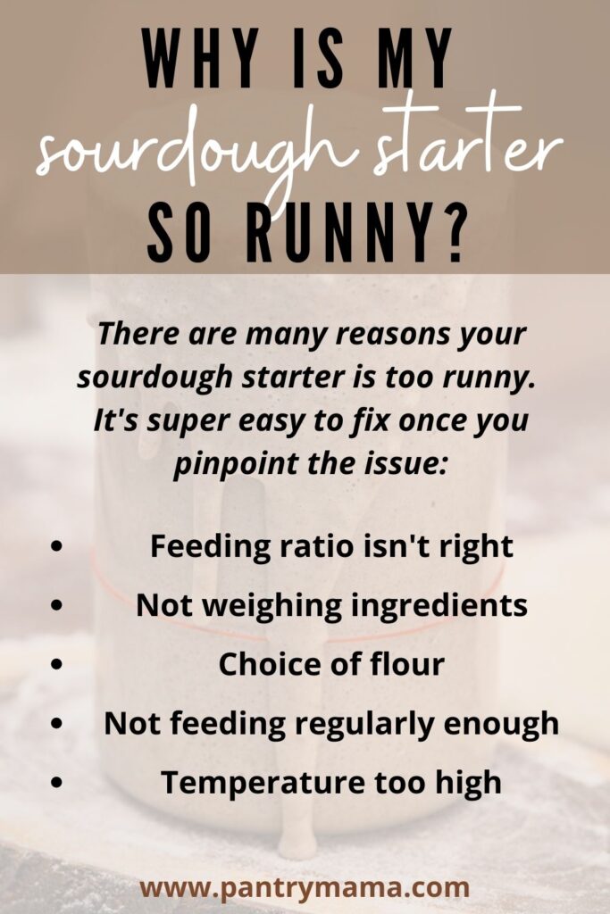 There are actually many different reasons for runny sourdough starter, all of which can be fixed fairly simply.