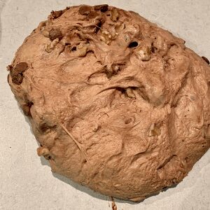 Stretching and Folding:Over the next few hours, you need to create some structure for you dough by stretching and folding. Aim to do around 4-6 sets of stretches and folds. For each set, stretch the dough up and over itself 4 times as you rotate the bowl. You'll find it gets easier to do at each set as the gluten in your dough develops.Around your second or third set of stretch and folds, you'll need to add your chocolate chips and walnuts. Don't worry if they aren't evenly distributed in the first set of stretch of folds you do with them - they will distribute over the next few sets.