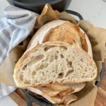 This simple sourdough bread recipe uses a Cast Iron Dutch Oven to bake your sourdough bread to perfection! You can use a round or oval Dutch Oven for this gorgeously light and crispy sourdough loaf.