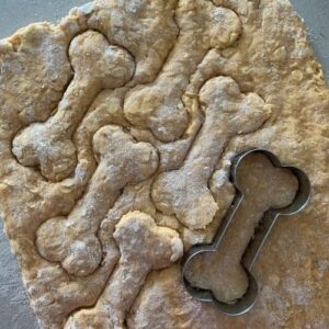 Place dog treats into the oven and bake at 180C/350F for around 20 minutes until golden. If you feel they aren't quite baked through, you can turn them over and pop them back into the oven for 5 minutes.