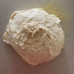 Once you're happy with the dough, you can wet your hands and gently shape your dough into a rough ball by performing a set of stretch and folds. This will deflate the dough - but don't worry. Now leave the dough to rest for around 30 minutes.