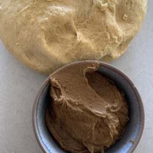 Before you roll out the dough you need to make the filling. Add brown sugar, molasses, spices and butter to a stand mixer and mix until it is thick and creamy. Set aside while you roll your dough.