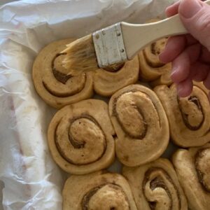 Once the dough has finished bulk ferment, you will need to fill and shape the gingerbread rolls.