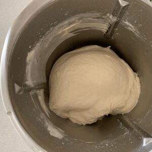 Add your flour and salt to the sourdough starter and water in the TM bowl. Mix for 20 seconds on Dough mode. Leave the dough in the TM bowl for 30 minutes to 1 hour.