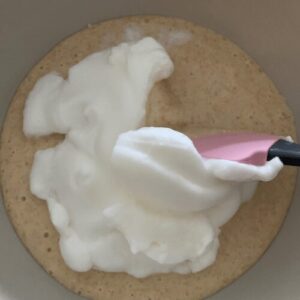 Separate the eggs into yolk and whites. Beat the whites until they form stiff peaks. Set aside (see notes for this).
